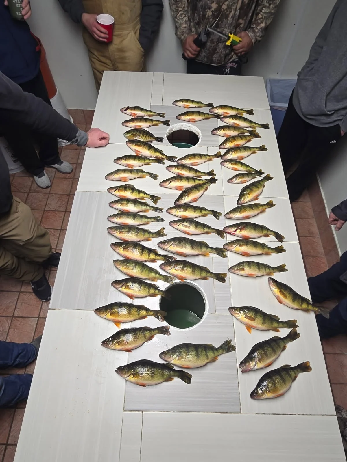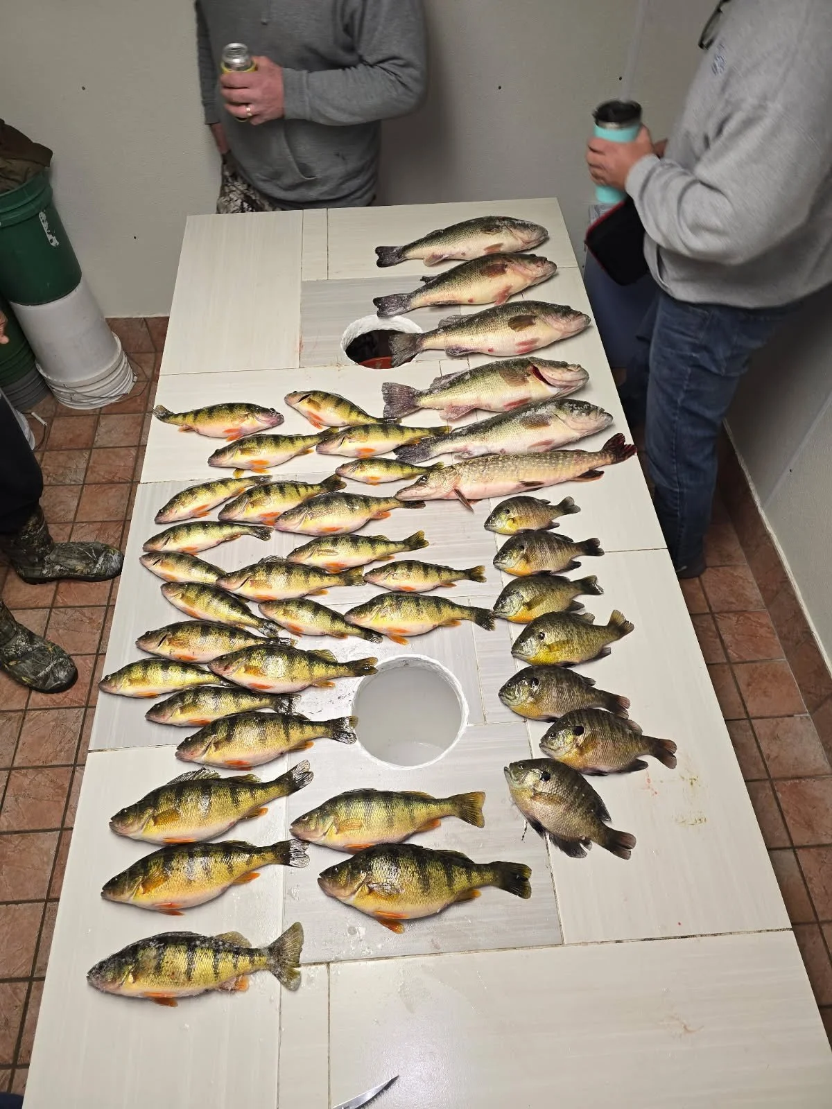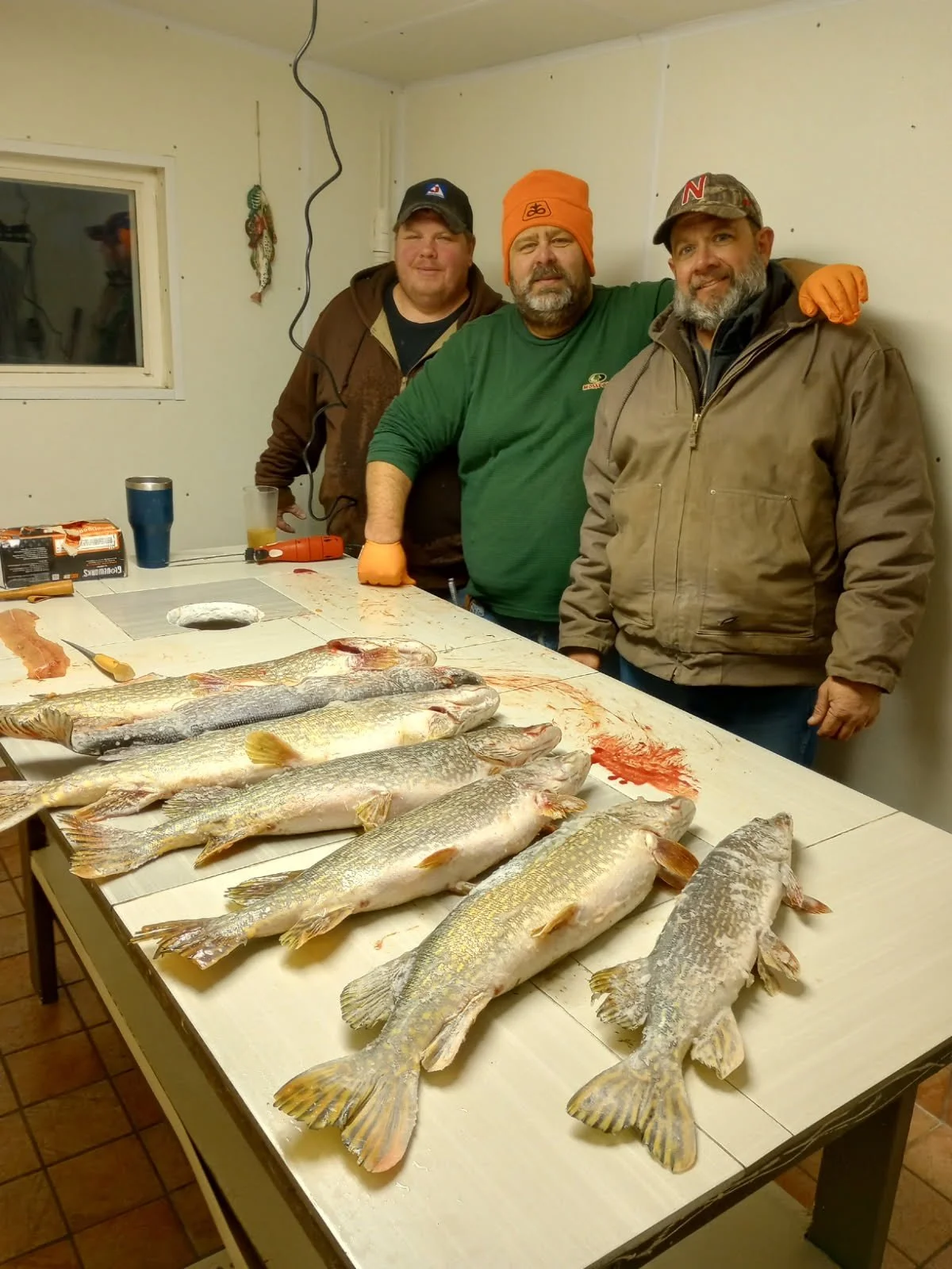 We have a shared fish cleaning station with a large sink, buckets, and ceiling outlets for electric fillet knives. The cleaning station is behind cabin three, and you may use the area to clean your big catch.
